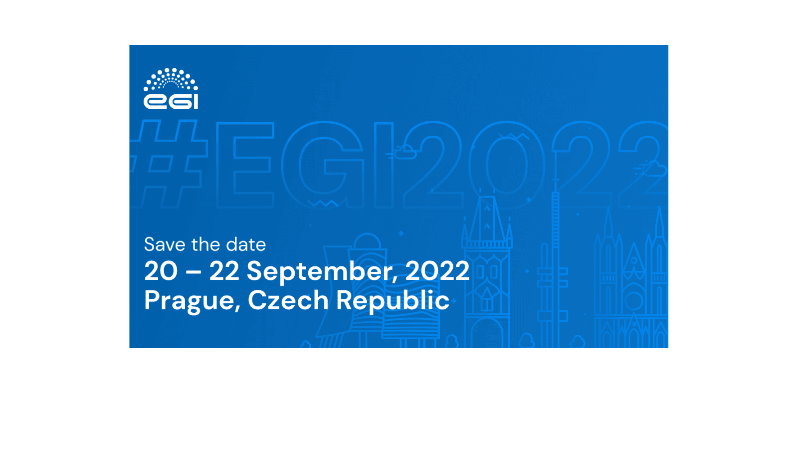 After two successful virtual editions, we are excited to announce the date of the next edition of the EGI Conference. Despite the ongoing pandemic, we are hopeful that we will be able to see you all in real life again and are very grateful to CESNET for offering to host EGI2022 in beautiful Prague.